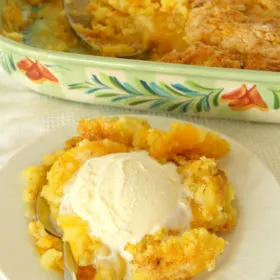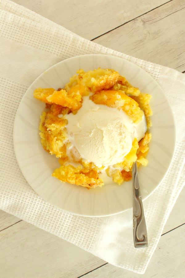 Need some comfort food right now? I suggest you try this one. There’s a whole lot of comfort in 3 Ingredient Peach Cobbler. And I would think it would be pretty easy to substitute other canned fruits to make different varieties of cake mix cobbler. Let us know what you think!