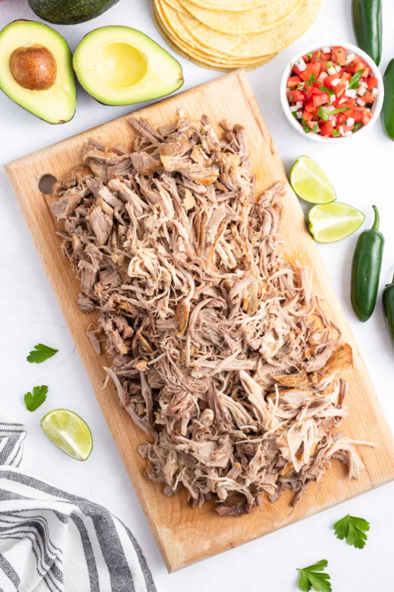We often order carnitas at our favorite San Diego taco shops, and we make them at home too. This recipe for brown sugar carnitas is inspired by the carnitas in Michoacán, known as the carnitas capital of the world. In this part of Mexico, carnitas are made with brown sugar added at the end of cooking to create a caramelized finish. The result is a super tender, shredded pork that is perfect for adding to tortillas to create carnitas tacos.