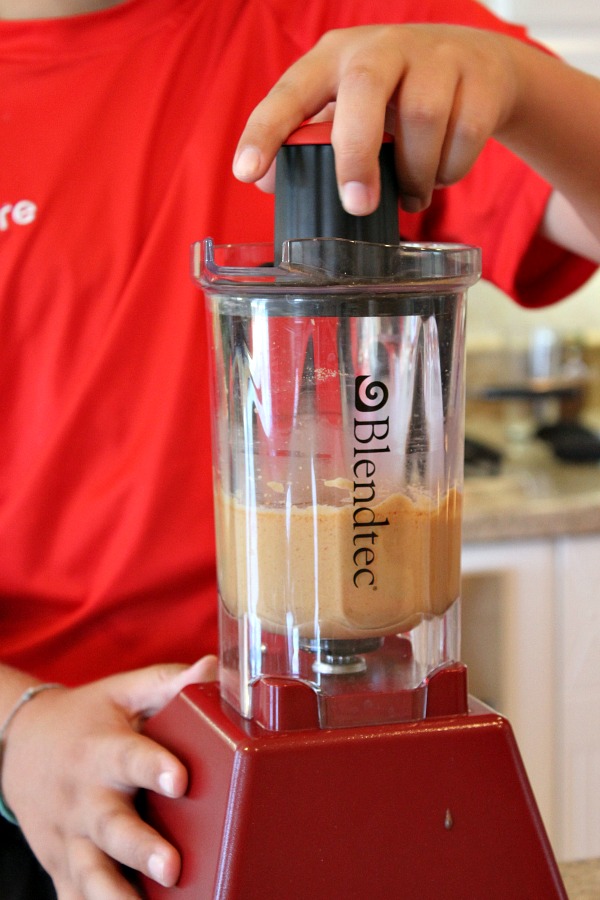 Peanuts! This blender, a Blendtec, is AWESOME! I like making milkshakes with it too.  🙂