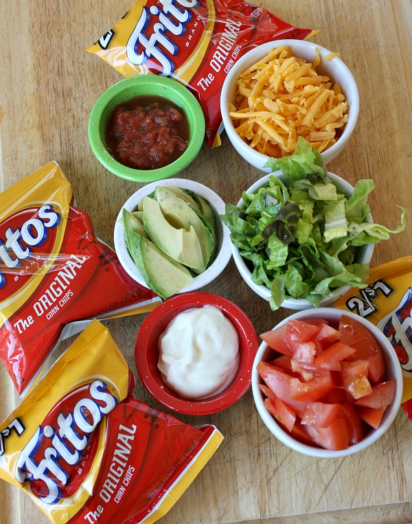 Gosh! The Fritos Company hardly puts any chips in the bag. What a rip-off… or so you think. It’s actually good to have a small amount of chips in the bag that way you can load up the rest of your bag with meat and other yummy stuff.