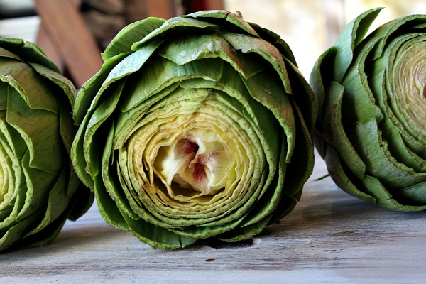 Hopefully I have introduced a new vegetable to all of your “Favorites’ Lists.” I love artichokes but usually I get so anxious to eat them because of the good smell wafting through the house for the hour or so while they are simmering.