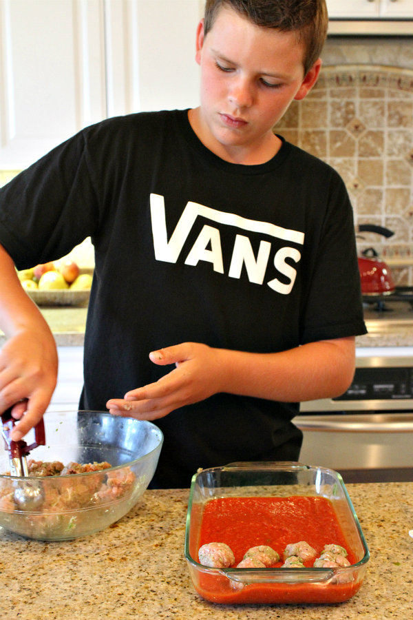 I wanted to make a few little itty bitty meatballs, but my mom said no because they wouldn’t cook evenly. All of the meatballs had to be near the same size.